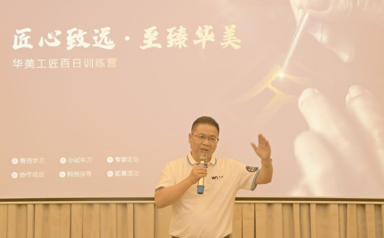 最后,由華美科技總經(jīng)理劉世平做發(fā)言總結(jié)。劉總首先圍繞專注、創(chuàng)新、精細化和高級化四個方面來闡述華美的工匠精神。劉總表示華美作為一個科技平臺,要體現(xiàn)華美的優(yōu)勢競爭力就是華美的工匠,打造華美的工匠之路既有利于舊賽道的新機會,同時也能夠為新賽道鋪路。工匠是角色,工匠是精神,但華美的工匠更應(yīng)該具有使命感,大家要帶著這種使命一步步去改變?nèi)A美。希望大家在未來一百天中的活動能順利展開,也歡迎大家提出更多的想法。