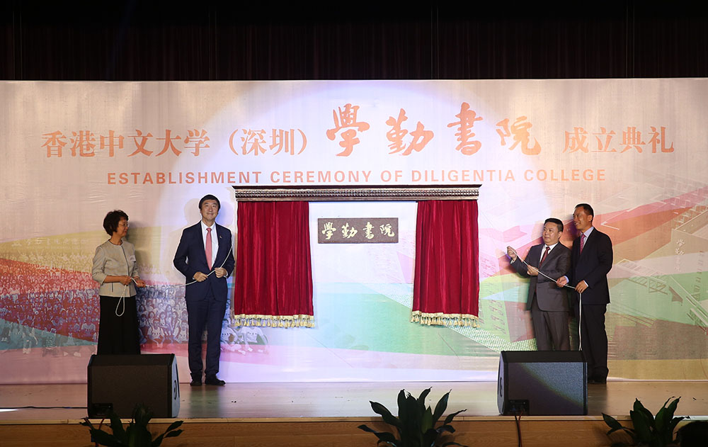 ”致辭結(jié)束以后,書院創(chuàng)辦人鄧學勤總裁、港中大(深圳)理事會沈祖堯主席、校長徐揚生教授、書院院長顧陽教授一同完成了揭幕儀式,至此宣告了香港中文大學(深圳)學勤書院正式成立。 我們有理由相信,在香港中文大學(深圳)和深圳市正中公益慈善基金會共同努力下,學勤書院會越辦越好,也期待未來讓教育反芻城市發(fā)展,讓城市的進程提升教育的未來!