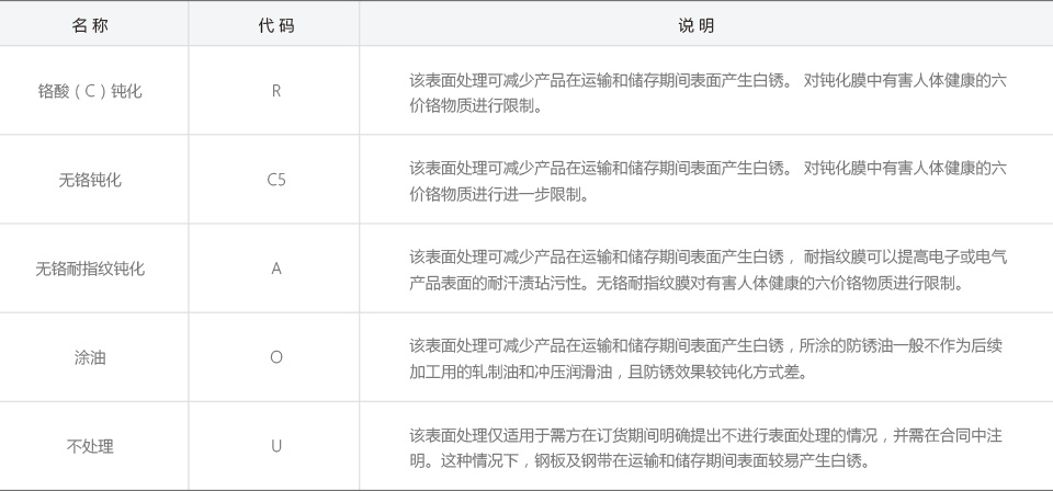| 寬度(mm) | 800~1300 | 表面處理方式 | C/R/C5/A/O/U |