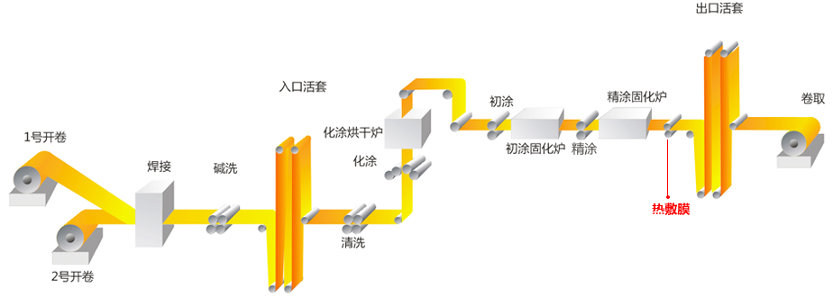 熱覆膜板是指在鋼板表面復(fù)合PET+PVC或PVC或單層PET 等復(fù)合膜的彩色層壓鋼板。熱覆膜板具備了金屬材料良好的強(qiáng)度及加工性能,同時(shí)也具備了高分子薄膜優(yōu)異的裝飾性能、耐腐蝕性能、耐候性能、耐污染性能等。